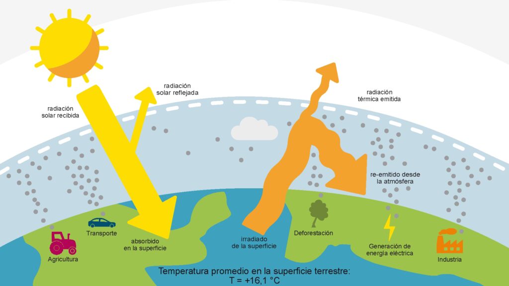 A su vez, cuando una inversión térmica atrapa los contaminantes, muchos de ellos son también gases de efecto invernadero o precursores de los mismos. Al concentrarlos cerca de la superficie, se intensifica el efecto invernadero a nivel local, aumentando las temperaturas en las ciudades y contribuyendo al fenómeno conocido como "isla de calor urbana". Esta concentración de contaminantes bajo el sol del verano puede desencadenar reacciones químicas que forman el ozono troposférico, un componente clave del smog fotoquímico, que no solo es extremadamente dañino para la salud, sino que también es un potente gas de efecto invernadero.