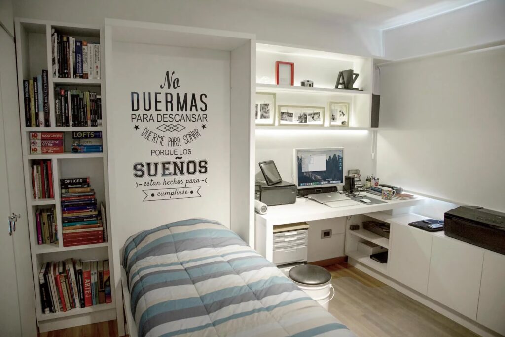 El consumo responsable también implica ser eficientes. ¿Por qué comprar dos o tres muebles cuando uno puede cumplir todas las funciones? Agregar soluciones de almacenamiento debajo de la cama, como cajones con guías metálicas o un carro cama, es un ejemplo perfecto de diseño multifuncional.