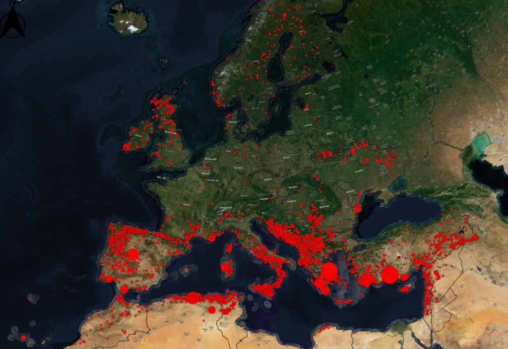 El verano se ha transformado en una estación de peligro. El sureste de Europa sufrió la ola de calor más larga jamás registrada, con 13 días consecutivos de temperaturas extremas que afectaron al 55% de la región. Se batió el récord de días con fuerte estrés térmico (66) y noches tropicales (23). Este calor sofocante no solo pone en riesgo la salud humana, sino que crea las condiciones perfectas para los incendios forestales. En Portugal, un incendio masivo quemó 110.000 hectáreas en tan solo una semana, una cuarta parte de toda la superficie quemada en Europa durante el año. En total, las llamas afectaron a 42.000 personas en todo el continente.