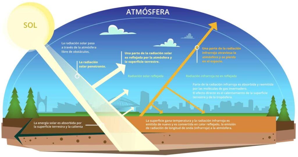 La atmósfera terrestre funciona como un invernadero natural, donde ciertos gases retienen parte del calor del sol, manteniendo una temperatura apta para la vida. El problema surge cuando la concentración de estos gases de efecto invernadero (GEI) aumenta drásticamente debido a nuestras actividades, provocando un calentamiento excesivo.
