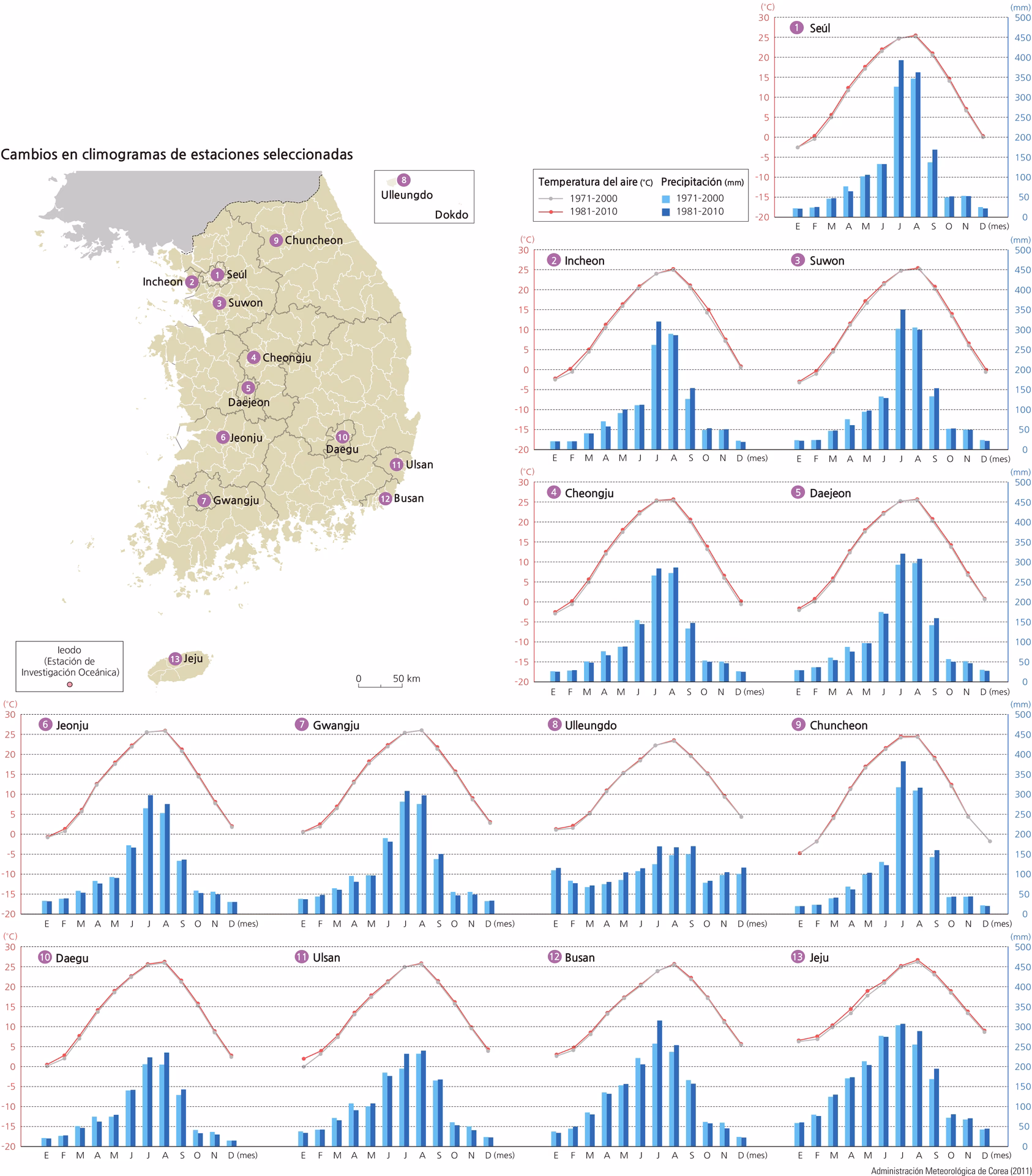 Tabla Comparativa de las Estaciones en Corea del Sur