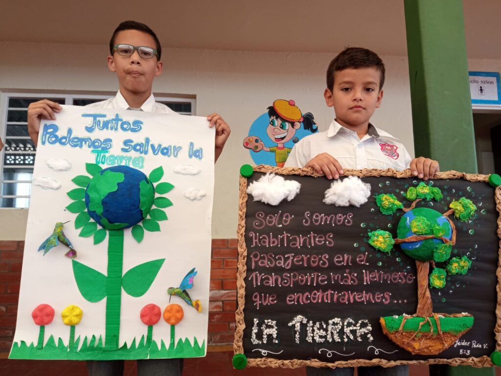 | "Siembra un árbol, siembra vida" | Un tronco de árbol hecho con rollos de papel higiénico y una copa frondosa hecha con hojas secas reales y recortes de papel verde de revistas. | Niños, familias, grupos comunitarios. |
