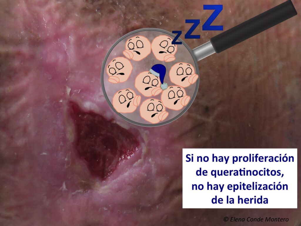 A veces, el proceso de curación falla. Las heridas crónicas son aquellas que se estancan, a menudo en la fase inflamatoria. Una infección persistente, una mala perfusión de oxígeno o la presencia continua de tejido necrótico pueden crear un desequilibrio donde las enzimas destructivas (como las metaloproteinasas) superan a los factores de crecimiento. La herida nunca pasa a la fase de proliferación y permanece abierta y vulnerable.