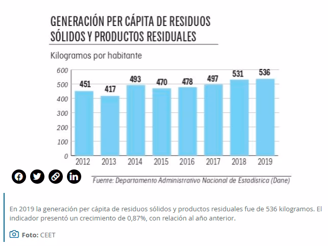 | Colombia (DANE 2019) | 11,82% | Crecimiento lento pero sostenido. Gran potencial en orgánicos y otros materiales. |