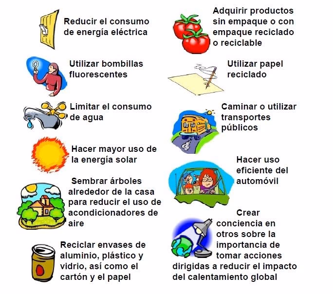 | Tomar duchas de 5 minutos en lugar de 10. | Ahorra energía usada para calentar el agua. | Reduce el consumo de agua potable y el coste de las facturas. |