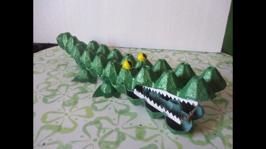Sin duda, una de las figuras más populares y divertidas para construir es un simpático cocodrilo. Su forma alargada y textura rugosa se adaptan perfectamente a la estructura de las hueveras. ¡Vamos a construirlo!