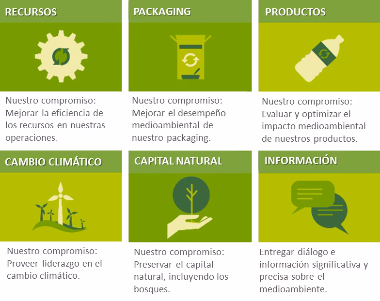 | Empaques | Aumento del uso de plástico reciclado y diseño de empaques para ser reciclables. | 100% de los envases reciclables o reutilizables para 2025. |