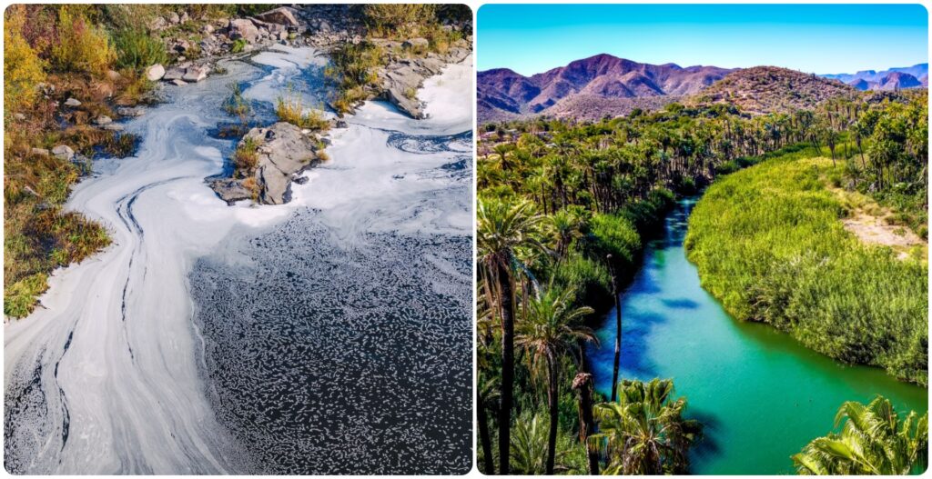 Los enemigos de nuestros ríos son numerosos y variados. La lista de contaminantes parece interminable: bacterias, virus, parásitos, fertilizantes, pesticidas, fármacos, nitratos, fosfatos, plásticos, desechos fecales y hasta sustancias radiactivas. Un problema creciente es la llamada contaminación difusa, originada principalmente por la agricultura y la ganadería intensiva, donde los químicos se filtran lentamente en el suelo y acaban llegando a los acuíferos y ríos, envenenándolos de forma gradual pero constante.