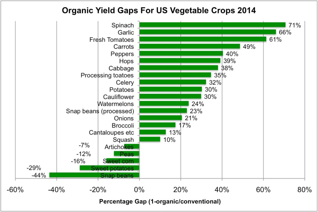 La crítica más contundente contra la agricultura orgánica es su rendimiento. Múltiples meta-análisis y estudios comparativos han llegado a una conclusión general: en promedio, los sistemas orgánicos producen menos que los convencionales por unidad de superficie. Las cifras varían, pero los estudios sugieren que los rendimientos orgánicos son, en promedio, un 25% más bajos. En algunos casos, especialmente para cultivos como los cereales que han sido intensamente optimizados para sistemas convencionales, esta brecha puede ampliarse hasta un 30% o incluso un 34%.