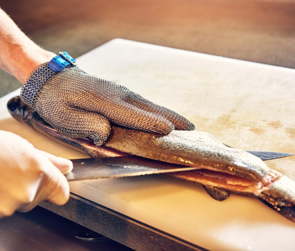 - Guantes de malla de acero: Específicos para operaciones de corte, especialmente en la industria cárnica y pesquera, protegen contra heridas graves por cuchillos o sierras.