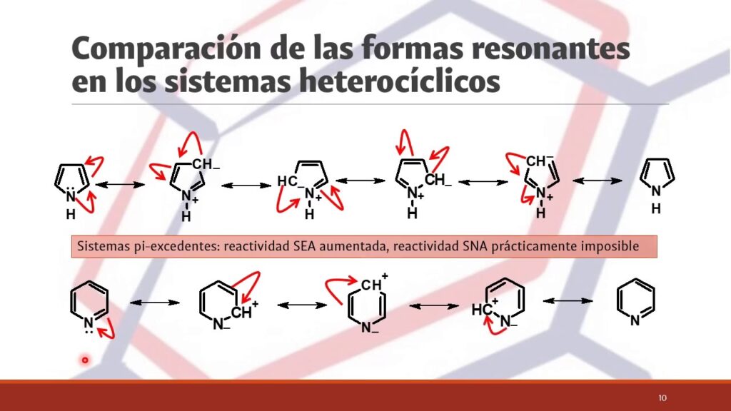 La reactividad de un anillo heterocíclico, es decir, su tendencia a reaccionar y transformarse, está fuertemente influenciada por dos factores: el tipo de heteroátomo y los grupos químicos (sustituyentes) unidos al anillo.