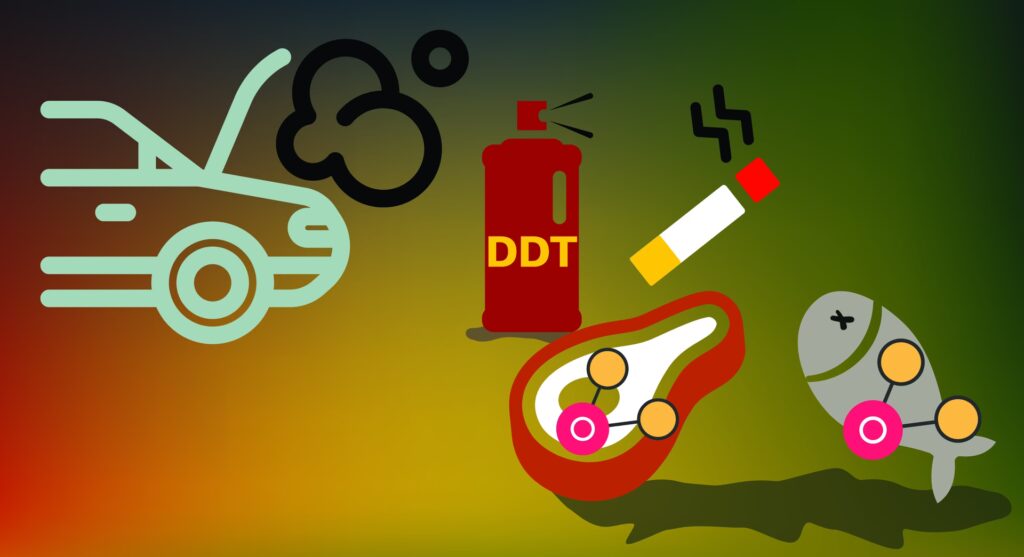La principal vía de exposición para la mayoría de las personas es a través de la dieta. Debido a la biomagnificación, los alimentos en la parte superior de la cadena alimenticia, como pescados grasos, carnes y productos lácteos, pueden contener niveles más altos de COP. También podemos estar expuestos por la inhalación de aire contaminado o el contacto con suelos o aguas contaminadas.
