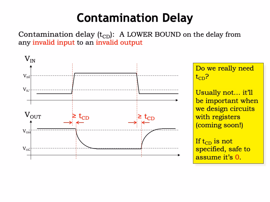 En esencia, el retardo de contaminación proporciona una garantía fundamental: el circuito está garantizado a no mostrar ningún cambio en su salida en respuesta a un cambio en la entrada antes de que haya transcurrido un tiempo igual al t_cd. Es la ventana de tiempo en la que podemos confiar plenamente en el valor de salida anterior.