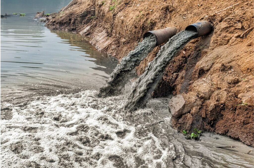 Las descargas industriales pueden liberar una gran variedad de productos químicos, incluidos los persistentes PFAS y metales pesados. Los vertederos también son una fuente, ya que los lixiviados (líquidos que se filtran a través de los residuos) pueden contener una mezcla compleja de contaminantes de los productos desechados, que eventualmente pueden contaminar las aguas subterráneas y superficiales.