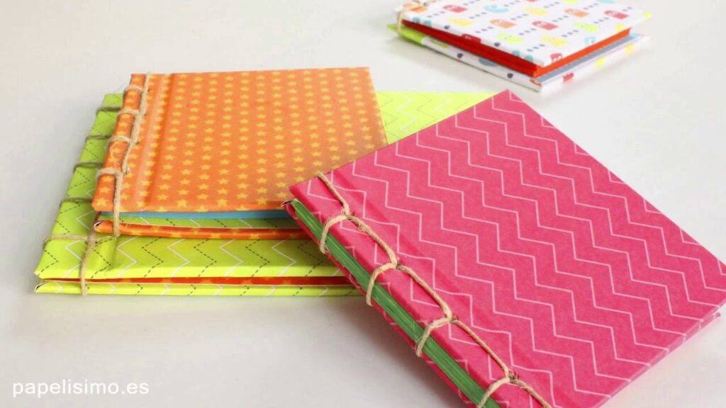 - Forra y decora las tapas: Dales un nuevo aspecto forrándolas con tela, papel de regalo, recortes de revistas o pintándolas. Pueden convertirse en las cubiertas de tus nuevas libretas caseras.