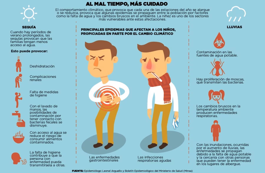 El impacto en la salud va más allá de la desnutrición. Las temperaturas más altas expanden el rango geográfico de vectores de enfermedades como los mosquitos, aumentando la incidencia de la malaria y el dengue en zonas donde antes no existían. Las olas de calor provocan un aumento de las enfermedades cardiovasculares y respiratorias, afectando de manera desproporcionada a ancianos, niños y trabajadores al aire libre. Además, el trauma de perder el hogar, los medios de vida y a los seres queridos genera un profundo impacto en la salud mental, con un aumento de la ansiedad, la depresión y el estrés postraumático.