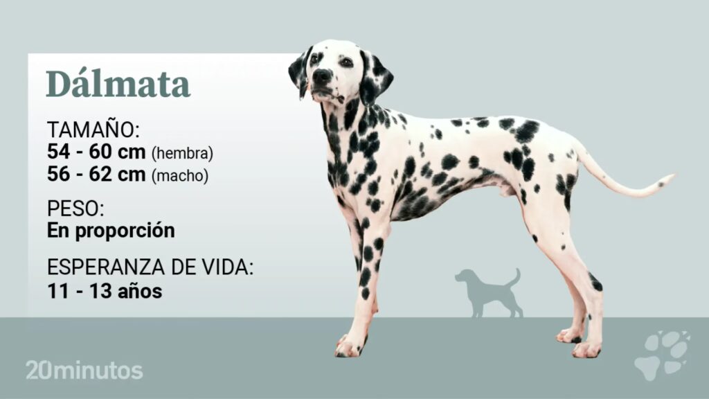 El dálmata es un perro de tamaño mediano a grande, con una apariencia atlética, musculosa y bien proporcionada que irradia elegancia en cada movimiento.