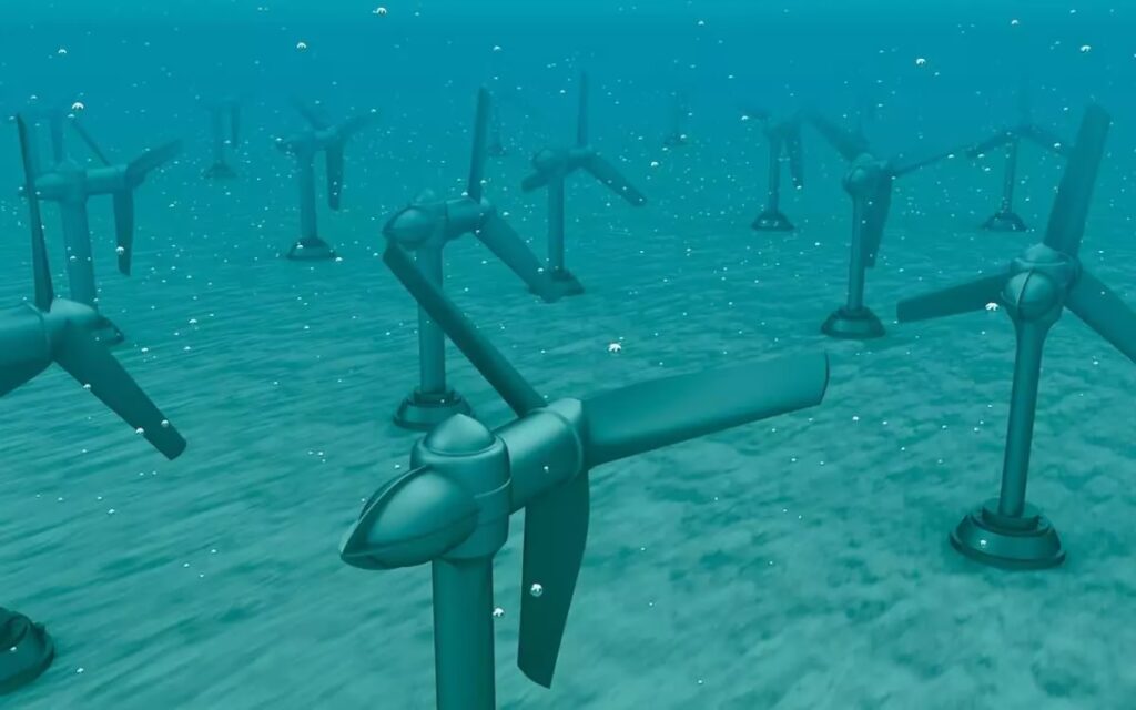Esta tecnología es conceptualmente muy similar a la energía eólica, pero bajo el agua. En lugar de aprovechar el viento, utiliza la energía cinética de las corrientes marinas. Se instalan turbinas submarinas, parecidas a grandes hélices o molinos, en lugares con fuertes corrientes. El flujo constante del agua hace girar las palas, lo que acciona un generador y produce electricidad. Estos sistemas son menos invasivos para el ecosistema que las presas de marea, tienen un menor costo de instalación y su impacto visual es nulo, ya que toda la infraestructura está sumergida.
