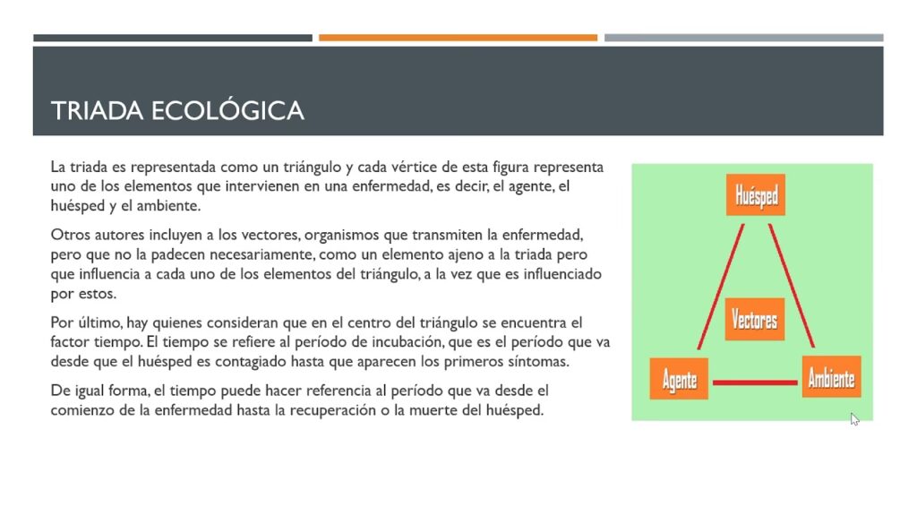 La clave de la Tríada Ecológica no reside en sus componentes aislados, sino en su interacción dinámica. La salud, ya sea de un individuo o de un ecosistema, representa un estado de equilibrio entre estos tres factores. La enfermedad o el problema ambiental aparecen cuando este equilibrio se rompe. Por ejemplo, un aumento de las lluvias (cambio en el ambiente) puede provocar un aumento de las poblaciones de mosquitos (vector en el ambiente), lo que aumenta la probabilidad de que un humano (huésped) sea picado y contraiga el dengue (causado por un agente viral).