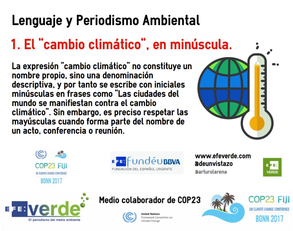 - Crisis climática y emergencia climática: Ambas expresiones son consideradas más adecuadas para describir la magnitud y las graves consecuencias del calentamiento global provocado por la actividad humana. Subrayan la necesidad de una acción inmediata y contundente. Es importante recordar que, al no ser nombres propios, se escriben siempre en minúsculas: crisis climática.