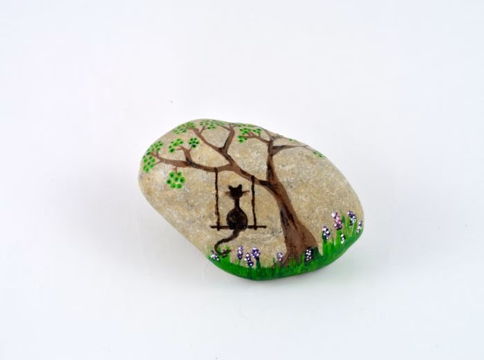- ¡Desata tu Imaginación!: Este es el momento de la diversión. Dibuja tu diseño con un lápiz suavemente sobre la piedra si lo necesitas, y luego comienza a pintar con tus pinceles y colores acrílicos. No temas experimentar con mezclas y técnicas.