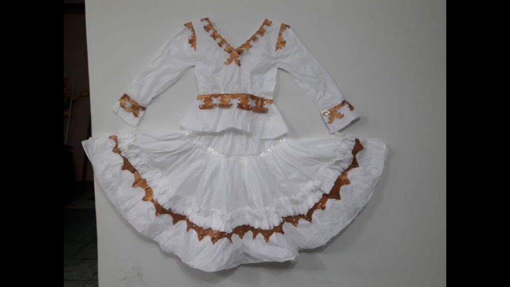 • El Vestido: Toma una falda larga que ya no uses como base. Para darle el volumen característico, necesitarás varias capas de enaguas. Puedes crearlas cosiendo varias faldas de sábanas blancas viejas, una encima de la otra. A la falda principal, cósele volantes hechos con tiras de tela de cortinas de encaje o de otras sábanas. ¡Mientras más volantes, más espectacular será el movimiento al bailar! La blusa puede ser una simple camisa blanca a la que le puedes añadir encajes en el cuello y los puños.