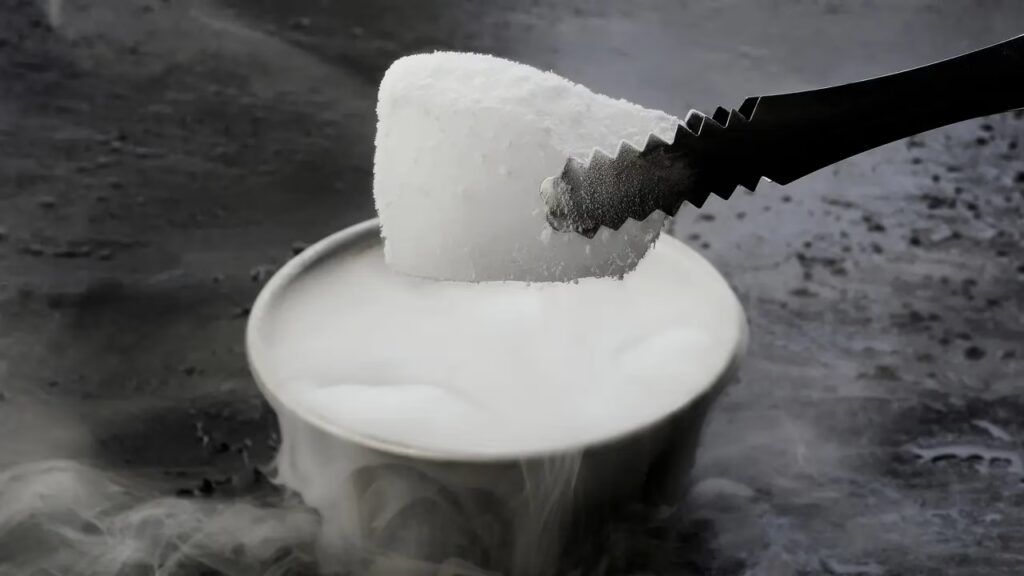 - Gastronomía y Coctelería: En la alta cocina, se emplea para enfriar rápidamente, crear texturas y generar efectos visuales espectaculares con humo en platos y bebidas.