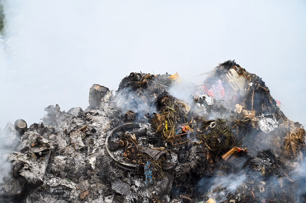La quema indiscriminada mezcla residuos orgánicos (hojas, ramas) con todo tipo de desechos inorgánicos: plásticos, gomas, textiles sintéticos, espumas, cueros y hasta restos de aparatos electrónicos. Esta combinación crea un cóctel químico aún más impredecible y peligroso.