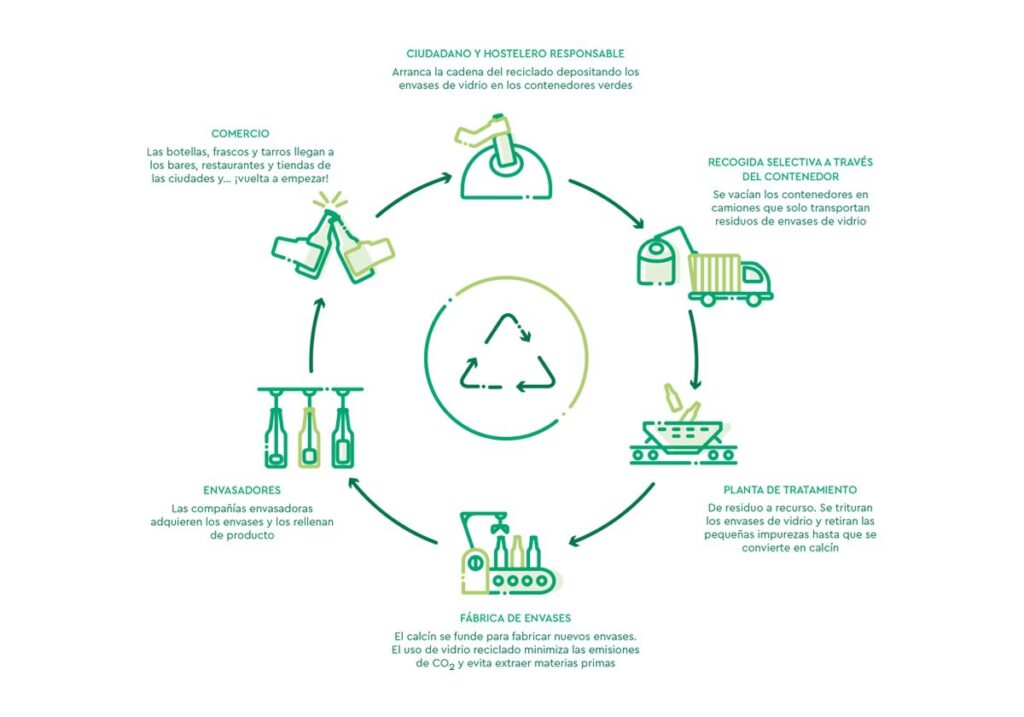 El vidrio es un material extraordinario. No importa cuántas veces se recicle, conserva el 100% de sus propiedades originales, sin perder calidad ni pureza. Este proceso constituye lo que se podría denominar “un círculo perfecto”, un ejemplo ideal de economía circular y sostenibilidad. Pero, ¿por qué es tan crucial entender este ciclo? Desde la recolección de una simple botella en casa hasta su transformación en un nuevo producto, comprender la cadena del reciclaje del vidrio es esencial para tomar conciencia de nuestro papel activo en la protección del medio ambiente. Cada envase que depositamos en el contenedor correcto es el primer paso de un viaje fascinante que ahorra recursos, energía y reduce nuestra huella de carbono.