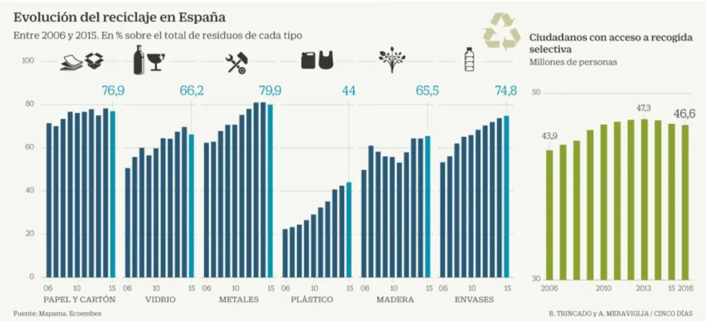 | Infraestructura de recogida | Red incipiente | 632.146 contenedores amarillos y azules |