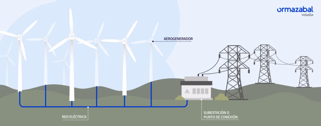 - Ajuste y Transmisión a la Red: La electricidad generada sale del generador y pasa por un transformador, generalmente ubicado en la base de la torre o cerca de ella. El transformador eleva la tensión de la electricidad para minimizar las pérdidas durante su transporte. Finalmente, la energía se inyecta en la red eléctrica general, lista para ser distribuida y consumida en hogares, industrias y ciudades.