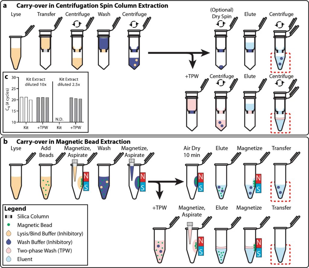 Una de las alternativas más extendidas son los kits comerciales basados en columnas de sílice. Estos kits utilizan membranas de sílice o partículas magnéticas que se unen específicamente al ARN en presencia de altas concentraciones de sales caotrópicas (a menudo todavía guanidina, pero sin la necesidad de fenol o cloroformo). El proceso es mucho más rápido y seguro: