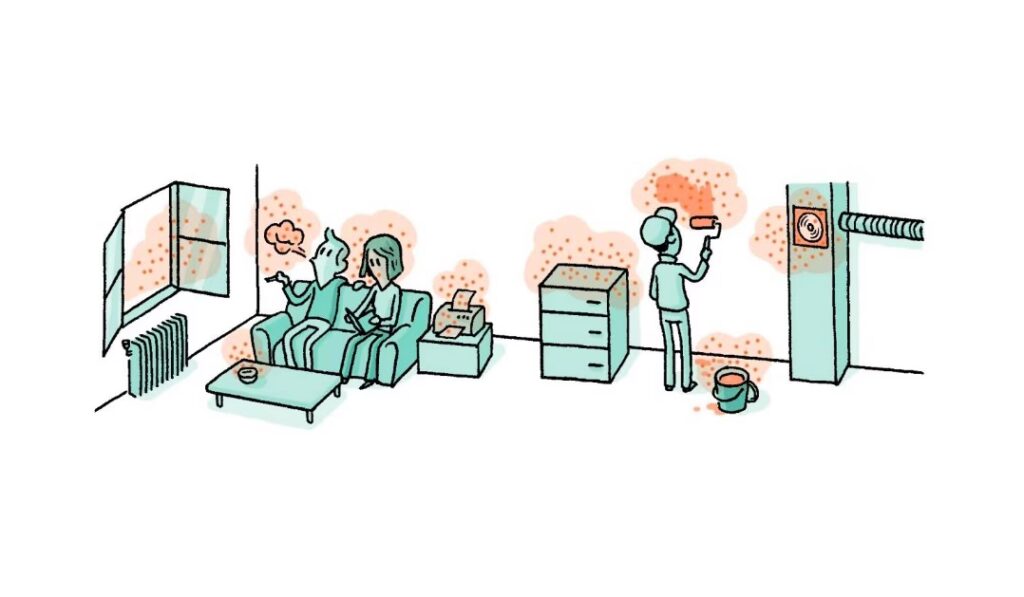 Los COV son un grupo amplio de sustancias químicas que se evaporan a temperatura ambiente. Están presentes en una cantidad asombrosa de productos cotidianos: pinturas, barnices, disolventes, productos de limpieza, ambientadores, muebles de aglomerado (que liberan formaldehído), alfombras nuevas, impresoras y hasta en cosméticos. La exposición a estos compuestos puede causar irritación de ojos, nariz y garganta, dolores de cabeza, mareos, fatiga, problemas respiratorios y, en casos de exposición prolongada, daños en el hígado, los riñones y el sistema nervioso central.