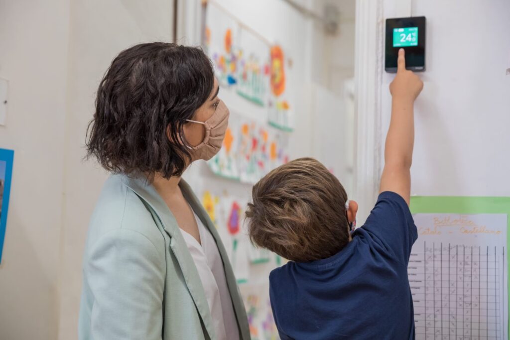 - Ventilación breve y eficaz: Para renovar el aire de un aula, basta con abrir las ventanas durante 10 minutos. Dejarlas abiertas más tiempo solo sirve para perder toda la energía invertida en climatizar el espacio.