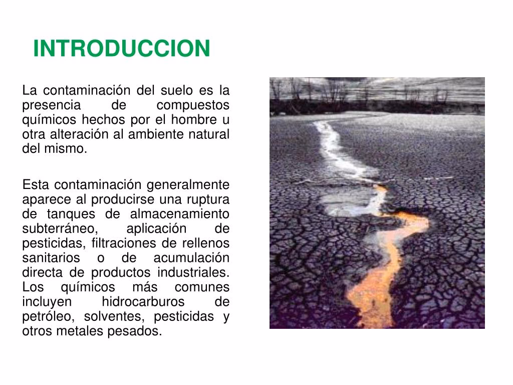 1. Introducción a la contaminación de suelos. 2. Los residuos como fuente de contaminación de suelos. 3. Contaminación de suelos por metales pesados. 4. Contaminación de suelos por mercurio. 5. Contaminación de suelos por actividades mineras. 6. Contaminación de suelos urbanos por elementos potencialmente tóxicos.