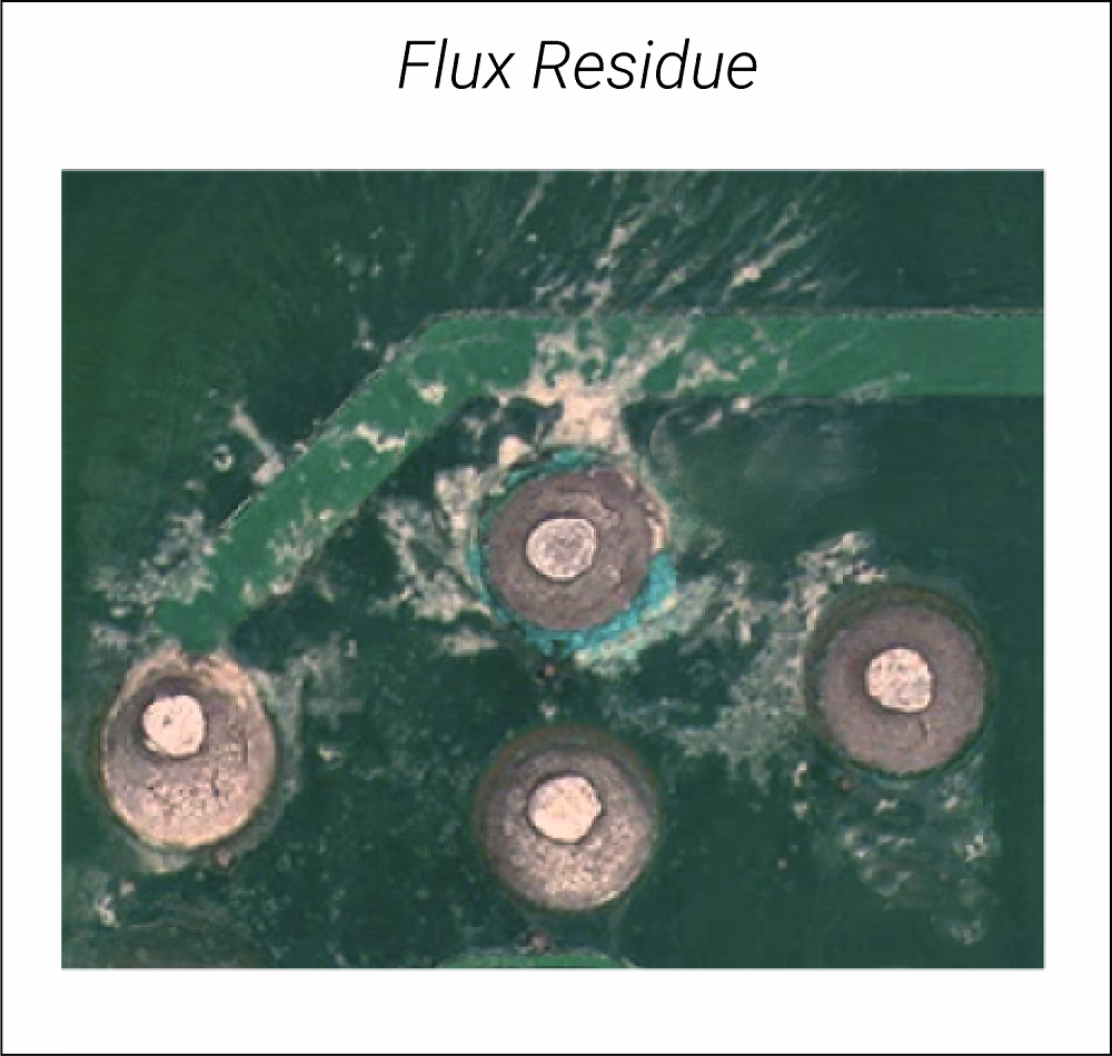 | Residuos de Flux (Ácidos orgánicos) | Proceso de soldadura | Corrosión, fugas de corriente, degradación del aislamiento. |