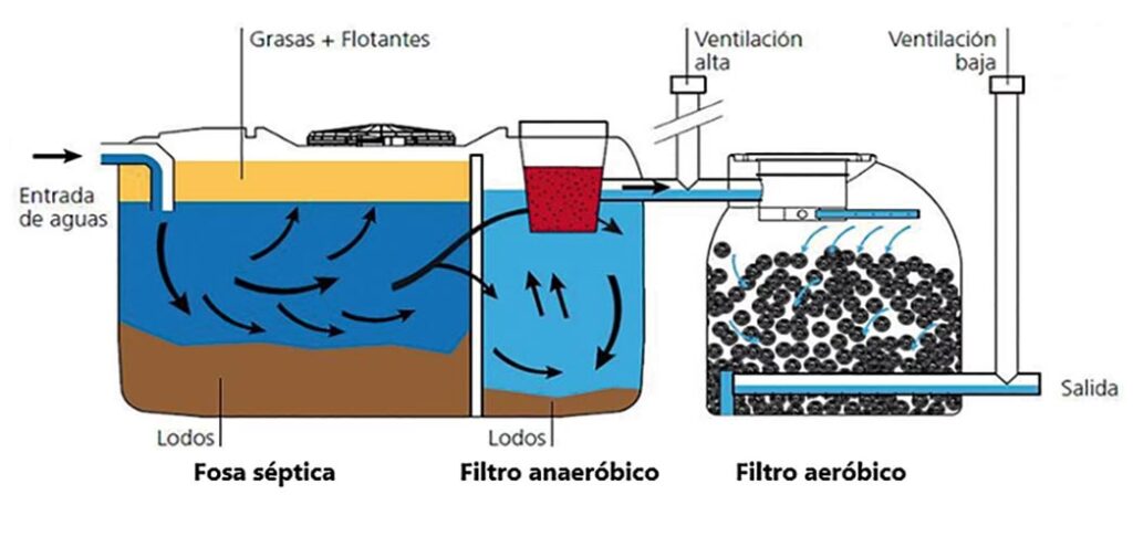 | Funcionamiento | Filtra los líquidos directamente al terreno sin tratamiento. | Realiza un tratamiento primario: separa sólidos y líquidos. |