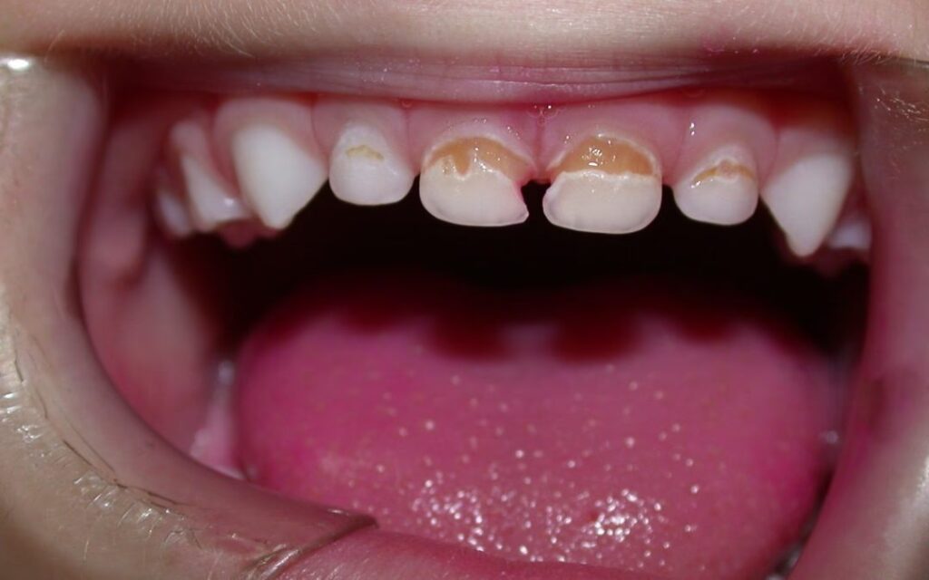 - Aparición temprana: Puede observarse en niños muy pequeños, a pocos meses de la erupción de sus primeros dientes.