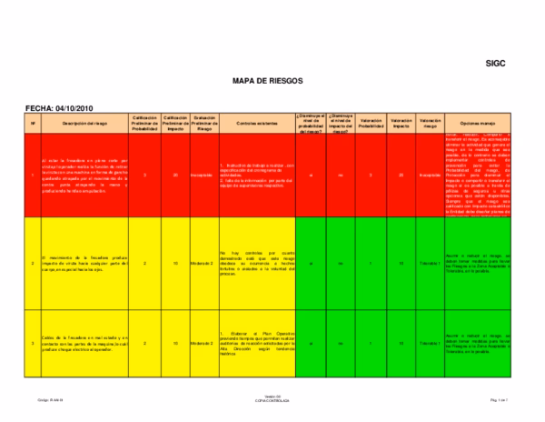 - Riesgos Verdes (Bajos): Son aceptables y solo requieren un seguimiento rutinario para asegurar que no aumenten su nivel de criticidad.