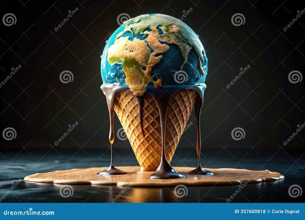 Esta es la esencia de la metaforización y es crucial para el cambio climático. Se usan imágenes concretas para explicar fenómenos abstractos. Pensemos en un cartel que muestra un helado de cono, con el globo terráqueo como la bola de helado, derritiéndose bajo un sol abrasador. El concepto abstracto del "deshielo de los casquetes polares" se convierte en la experiencia cotidiana y fácilmente comprensible de un helado que se arruina. La urgencia es palpable: hay que actuar antes de que se derrita por completo.