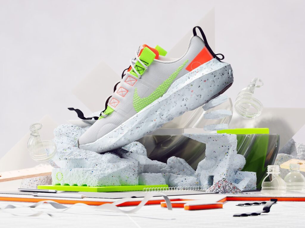 - Desechos de fábrica (preconsumo): Una cantidad significativa de los materiales reciclados proviene de los propios procesos de fabricación de Nike. En lugar de incinerar o desechar los recortes de tela, suelas defectuosas o excedentes de material, ahora se reincorporan al ciclo productivo.