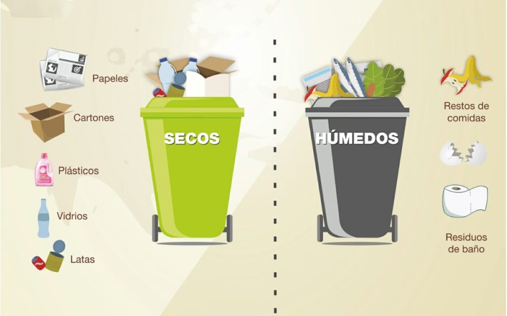 | Rechazo / Resto | Pañales, colillas, polvo, cerámica rota, toallitas húmedas. | Gris / Negro |