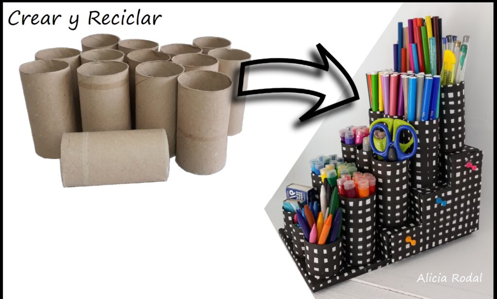 | Tubos de Cartón | Rollos de papel | Muy Fácil | Lápices, bolígrafos, tijeras |