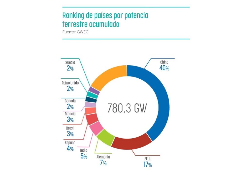 China es el líder mundial indiscutible en términos de capacidad instalada total y ritmo de crecimiento anual, tanto en energía eólica terrestre como marina.