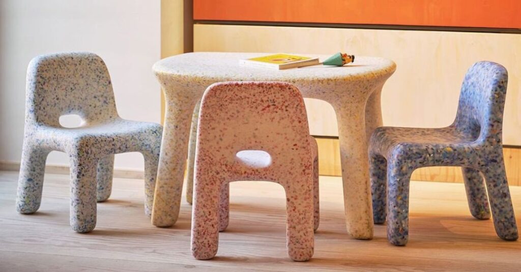 Los electrodomésticos al final de su vida útil (RAEE) son un flujo de residuos complejo y voluminoso. La marca belga EcoBirdy ha puesto el foco en los frigoríficos y otros juguetes de plástico desechados para crear una línea de mobiliario infantil colorida y encantadora. Mediante un meticuloso proceso de separación, limpieza y trituración, convierten estos plásticos en un material seguro y duradero. Sus sillas y mesas no solo son estéticamente atractivas para los más pequeños, sino que también son un ejemplo tangible de economía circular. Además, la empresa se compromete a recoger y reciclar de nuevo sus propios muebles al final de su vida útil, cerrando el círculo por completo.