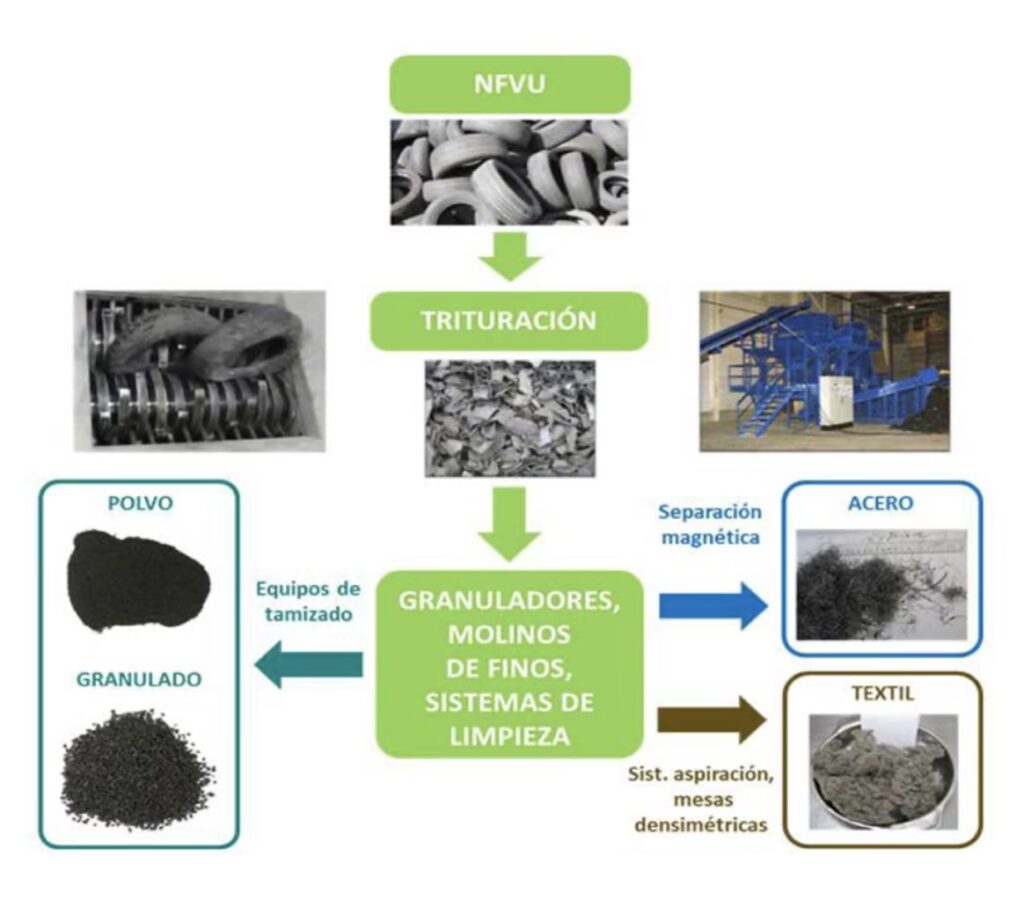 - Trituración: El primer paso mecánico es la trituración. Máquinas especializadas desgarran y cortan las llantas en trozos más pequeños, facilitando su manejo.