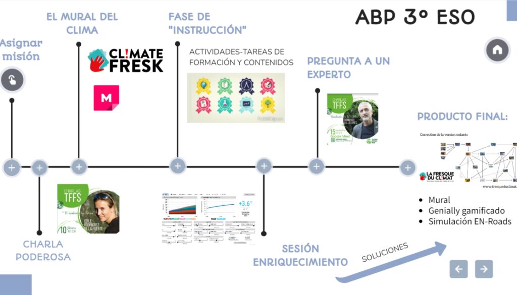 Para explorar el terreno de las soluciones, los estudiantes utilizan el simulador EN-ROADS, una potente herramienta desarrollada por el prestigioso Instituto Tecnológico de Massachusetts (MIT). Este simulador interactivo les permite tomar decisiones políticas a escala global (subvencionar renovables, poner un precio al carbono, mejorar la eficiencia energética, etc.) y observar en tiempo real su impacto en la temperatura global a finales de siglo. El objetivo es que logren diseñar un escenario que limite el calentamiento a 1,5ºC, comprendiendo las complejas concesiones y sinergias que implica la acción climática.