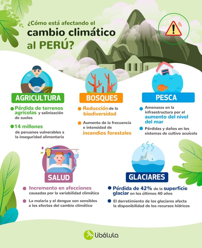 Las proyecciones indican que para el año 2030, Perú podría enfrentar un aumento de la temperatura promedio de 1°C y un incremento del 10% en la variabilidad de las lluvias, lo que afectaría directamente a la agricultura, los recursos hídricos y los ecosistemas.