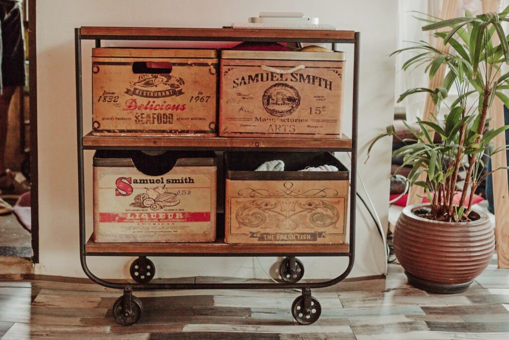 | Cajas Robustas | Fabricadas con madera más gruesa y resistente, a veces provenientes de pallets. Son pesadas y duraderas. | Ideales para muebles funcionales que deben soportar peso: estanterías, mesas ratonas, bancos, zapateros, e incluso módulos de cocina. |