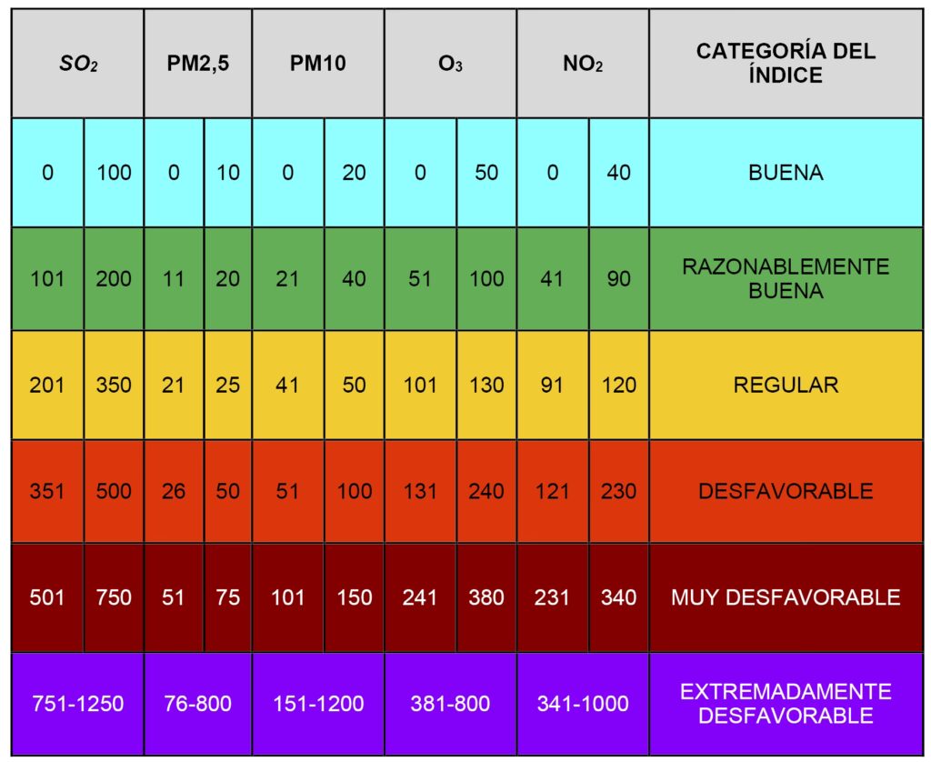 | Móviles | Automóviles, camiones, autobuses, aviones | Monóxido de Carbono (CO), Óxidos de Nitrógeno (NOx), Material Particulado (MP) |